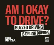 Buzzed Driving Is Drunk Driving is a year-round social norming campaign that focuses on drunk driving prevention. This page has resources that can be used year-round and seasonally themed material that can be found on the pages linked below. Use any of our resources to encourage drivers to not get behind the wheel after drinking and to plan for a safe, sober ride home.