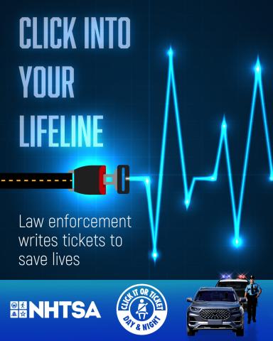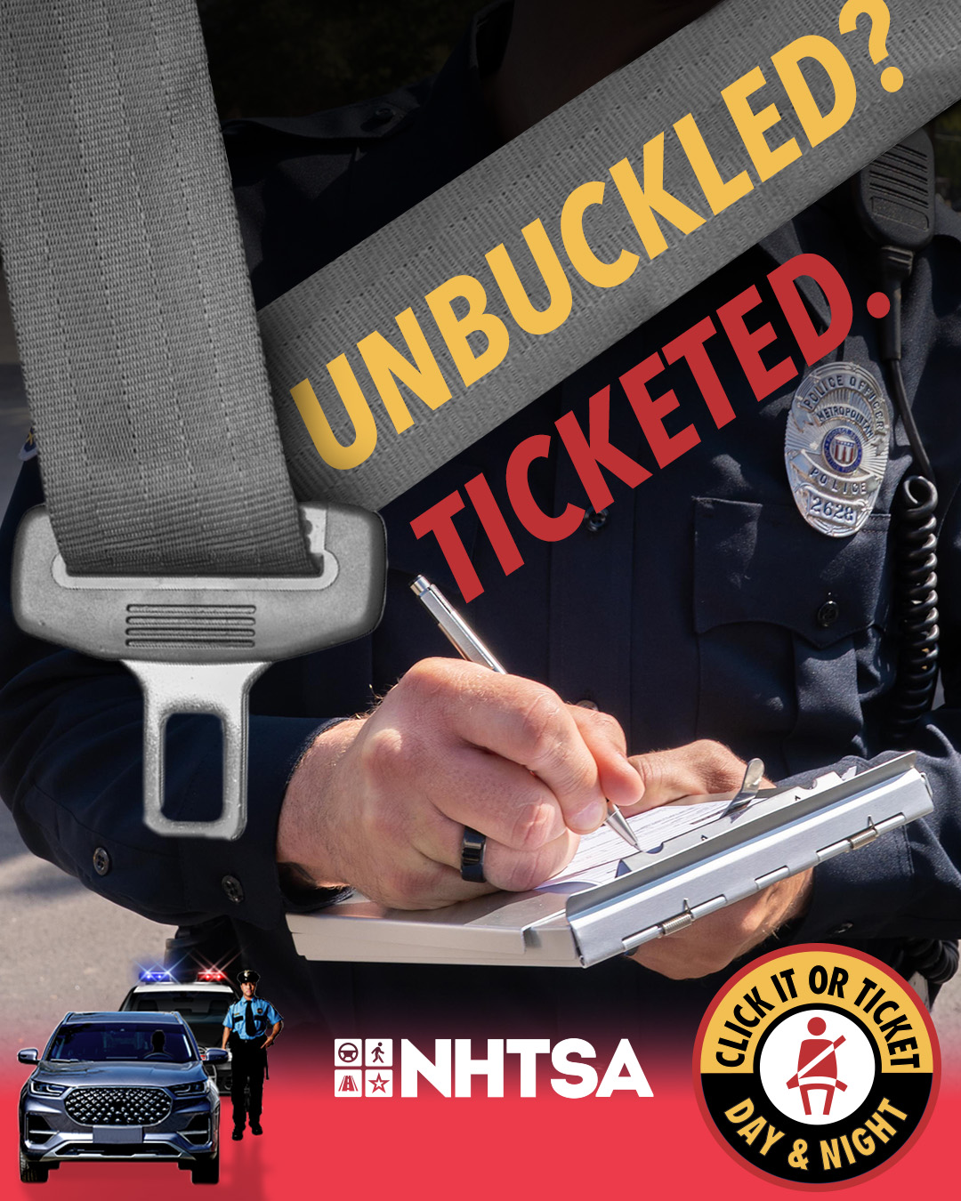 Click It or Ticket is a national high-visibility enforcement campaign that focuses specifically on the consequences of not wearing a seat belt while urging riders to always buckle up. Material created for this campaign highlights law enforcement’s goal of encouraging drivers and passengers to wear seat belts and to spread awareness about the increased police presence on our nation’s roads during this period.